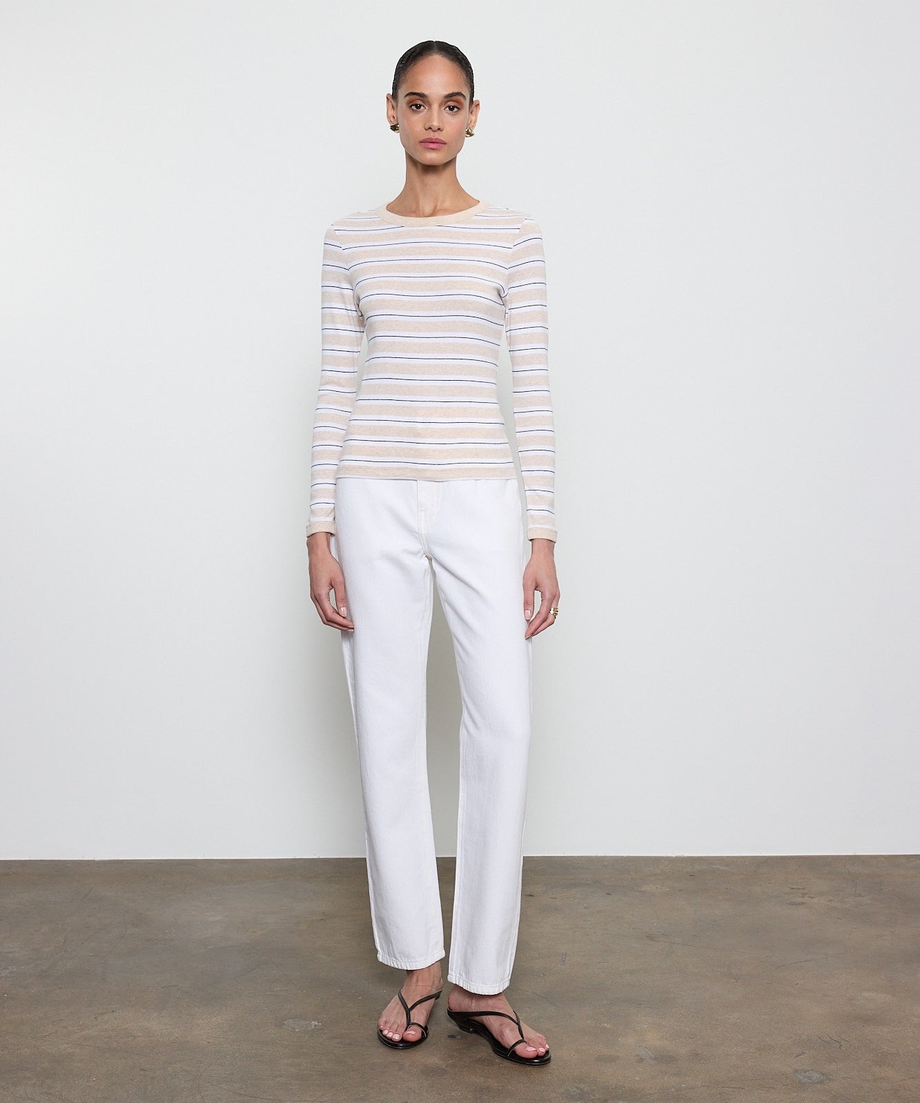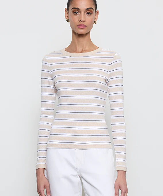 Cotton Stripe Classic L/S Tee Wheat/White Stripe