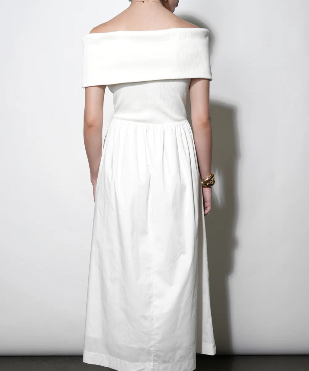 Marjorie Mixed Media Off Shoulder Midi Dress